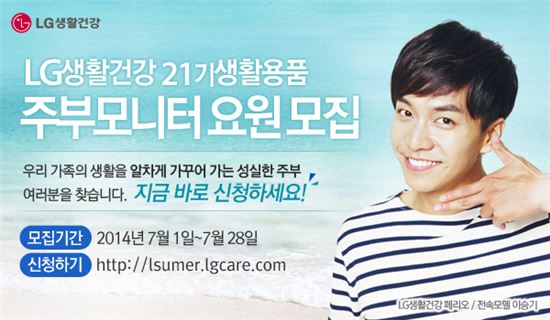 [아시아경제 임혜선 기자]LG생활건강은 생활용품 브랜드의 신제품 제안과 살림에 대한 아이디어를 공유할 하반기 주부모니터 요원을 오는 28일까지 모집한다.모집 대상은 서울, 경기 지역(인천 포함)에 거주하는 20~40대 전업주부로, 기존에 좌담회와 모니터 요원 경험이 없어도 생활용품에 관심이 많고 월 1회 진행되는 모니터 요원 정기모임에 적극적으로 참석할 수 있으면 누구나 지원이 가능하다. LG생활건강 생활용품 주부모니터 요원은 풍부한 살림 경험과 노하우를 바탕으로 생활용품 신제품 아이디어 및 개선점 제안, 제품 광고, 이름, 디자인 평가, 보조 모니터 관리 등 생활용품과 관련한 다양한 활동을 펼치게 된다. 참여를 원하는 신청자는 LG생활건강 엘슈머 홈페이지에 방문해 회원가입을 한 뒤 생활용품 주부모니터 요원 지원서를 작성하면 된다. 1차 서류 전형에 통과하면 2차 면접 심사 후, 다음달 22일 최종 합격자가 발표된다. 합격자는 다음달부터 11월까지 활동하게 되며 소정의 활동비가 지급된다. 임혜선 기자 lhsro@asiae.co.kr<ⓒ세계를 보는 창 경제를 보는 눈, 아시아경제(www.asiae.co.kr) 무단전재 배포금지>