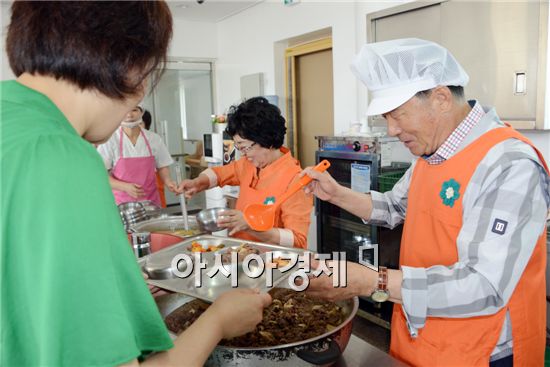 제45대 안병호 함평군수 취임식이 1일 오전 함평군농어민문화체육센터에서 군민과 공직자 등 500여 명이 참석한 가운데 열렸다. 취임식이 끝난 후 첫 공식일정으로 부인 정송자 여사와 함께 관내 노인양로시설인 함평성애양로원을 찾아 급식 봉사를 하면서 민생행보를 펼쳤다.<br /> <br />