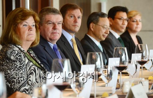 [아시아경제 백소아 기자] 1일 서울 중구 롯데호텔에서 열린 IOC위원 환영오찬에서 토마스 바흐 IOC위원장(왼쪽부터 두 번째)을 비롯한 참석자들이 환영사를 경청하고 있다.백소아 기자 sharp2046@asiae.co.kr<ⓒ세계를 보는 창 경제를 보는 눈, 아시아경제(www.asiae.co.kr) 무단전재 배포금지>