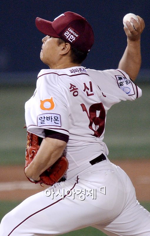 [아시아경제 김현민 기자] 2일 서울 목동구장에서 열린 프로야구 롯데 자이언츠와 넥센 히어로즈의 경기, 8회초 넥센 구원투수 송신영이 역투하고 있다.김현민 기자 kimhyun81@asiae.co.kr<ⓒ세계를 보는 창 경제를 보는 눈, 아시아경제(www.asiae.co.kr) 무단전재 배포금지>