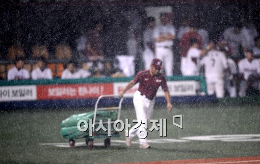 [아시아경제 김현민 기자] 2일 서울 목동구장에서 열린 프로야구 롯데 자이언츠와 넥센 히어로즈의 경기, 넥센이 7-3으로 앞선 8회말 장대비가 쏟아져 우천중단 되고 있다.김현민 기자 kimhyun81@asiae.co.kr<ⓒ세계를 보는 창 경제를 보는 눈, 아시아경제(www.asiae.co.kr) 무단전재 배포금지>