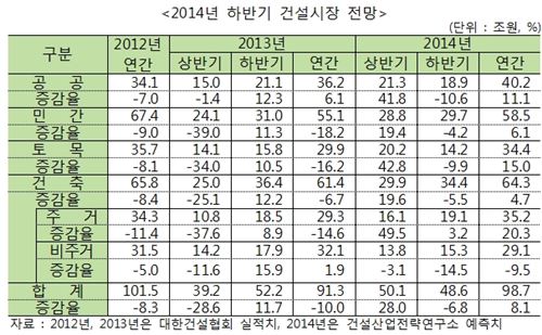 [아시아경제 박혜정 기자] 올 하반기 건설업계가 최악의 상황을 맞을 수도 있다는 경고의 목소리가 나왔다. 수익성과 현금 흐름이 지속적으로 악화되고 있는 가운데 건설경기 부진까지 이어질 경우 자금난에 빠진 건설업체에 결정적인 타격을 줄 수밖에 없다는 지적이다.김민형 한국건설산업연구원 건설정책연구실장은 3일 대한상공회의소 소회의실에서 열린 '2014 하반기 건설시장 환경 변화와 대응 발표회'에서 "하반기 국내 건설 경기는 완만한 회복세를 보이겠지만 정부의 건설정책 부문에서 본격적인 경쟁 룰(규칙) 변화가 예상된다"며 건설업계에 적극적인 대응을 주문했다. 김 실장은 올 하반기 건설업계에 위기와 기회가 공존한다고 봤다. 정부의 다양한 규제 개혁으로 새로운 사업기회가 생기겠지만 경제민주화, 공정거래질서 확립 등에 따른 영업 위험요인 확대도 예상된다는 것이다. 특히 자금 확보에 실패한 건설업체는 하반기 최악의 상황을 맞을 수도 있다고 경고했다. 김 실장은 "최근 수익성과 현금 흐름이 지속적으로 악화되고 있는데 하반기에도 건설경기가 부진할 경우 자금난에 빠진 업체에 최악의 상황이 올 수도 있다"고 말했다. 올해 말까지 만기가 도래하는 건설업체의 회사채 발행 잔액은 총 5조249억원에 달한다. 회사채 발행이 어려워진 건설사들이 마지막 수단으로 유상증자나 전환사채 발행에 나서고 있지만, 건설경기 회복세가 꺾이거나 부진할 경우 향후 최악의 자금 상황에 처하게 될 것이라는 얘기다. 김 실장은 "민간시장 회복에 따른 자금 조달에도 적극 나서야 한다"면서 "어떤 측면에서든지 올해 건설업체에 자금 확보는 생사를 좌우할 중요한 이슈가 될 것"이라고 강조했다. 한편 이날 김선덕 건설산업전략연구소장은 올해 국내 건설수주 규모를 98조7000억원 수준으로 전망했다. 김 소장에 따르면 상반기의 경우 지난해 건설수주 급감에 따른 기저효과와 공공공사 조기 발주, 발주 물량 증가, 지방 분양시장 활황세 등 다양한 호재에 힘입어 전년 동기 대비 28% 증가했다. 그러나 하반기에는 국내 건설수주 규모가 하락세로 전환될 것으로 보인다. 김 소장은 "하반기에는 공공부문 조기 발주에 따른 발주 물량 감소, 거시경제 상승률 둔화가 예상되는 가운데 지방 아파트 입주 물량이 늘어나면서 상반기의 분양 호조를 이어가기 힘들 것"이라면서도 "정부의 경기 부양 의지와 과감한 규제 개혁에 따라 국내 건설수주액이 100조원을 돌파할 가능성도 있다"고 말했다. 박혜정 기자 parky@asiae.co.kr<ⓒ세계를 보는 창 경제를 보는 눈, 아시아경제(www.asiae.co.kr) 무단전재 배포금지>