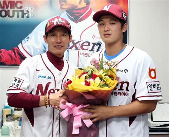 염경엽 감독(왼쪽)과 최원태[사진 제공=넥센 히어로즈]