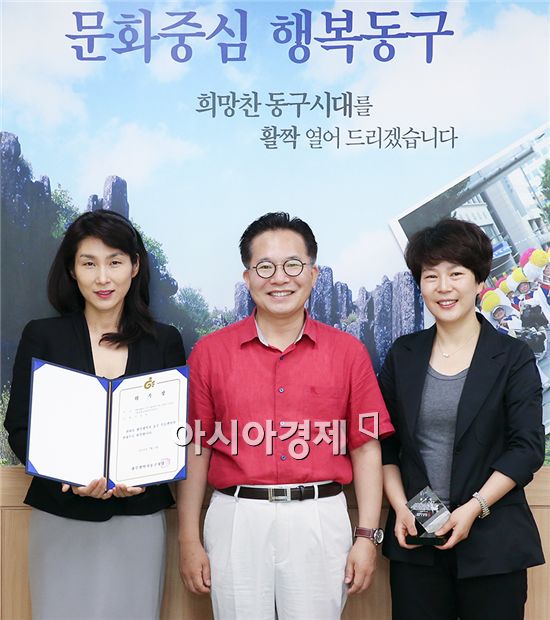 노희용 광주시 동구청장은 4일 3층 접견실에서 무등갤러리 신임 관장· 퇴임 관장에게 위촉장 및 공로패를 수여하고 그 동안의 노고를 치하했다. 사진제공=광주시 동구<br />