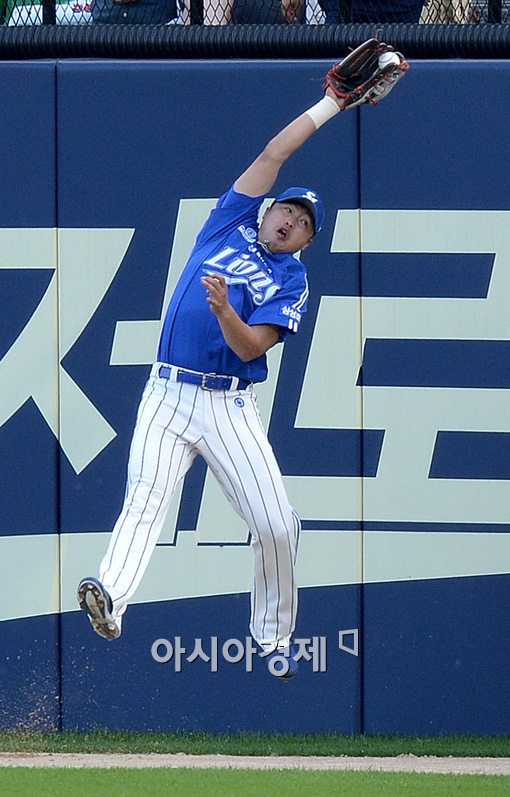 [아시아경제 김현민 기자] 4일 오후 서울 잠실구장에서 열린 프로야구 삼성 라이온즈와 두산 베어스의 경기, 삼성 우익수 박한이가 1회말 두산 선두타자 민병헌의 타구를 놓치고 있다. 김현민 기자 kimhyun81@asiae.co.kr<ⓒ세계를 보는 창 경제를 보는 눈, 아시아경제(www.asiae.co.kr) 무단전재 배포금지>