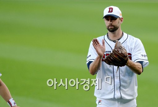 [아시아경제 김현민 기자] 4일 오후 서울 잠실구장에서 열린 프로야구 삼성 라이온즈와 두산 베어스의 경기, 두산 선발 니퍼트가 2회초 수비를 마치고 수비진을 향해 박수를 보내고 있다. 김현민 기자 kimhyun81@asiae.co.kr<ⓒ세계를 보는 창 경제를 보는 눈, 아시아경제(www.asiae.co.kr) 무단전재 배포금지>