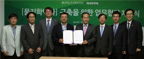 [아시아경제 김영식 기자]네이버가 한국물리학회와 함께 주요 물리학 용어를 담은 물리학백과를 공동 제작한다.네이버는 8일 분당 사옥에서 한국물리학회와 물리학백과 제작을 위한 업무 협약을 체결했다. 이 백과에는 물리학 용어는 물론 해당 개념의 출현 배경, 기여한 인물, 응용 분야, 학문적 가치, 사회 문화적 영향 등 물리학의 총체적인 내용이 담길 예정이다. 1952년에 창립된 한국물리학회는 그간 영어와 한자어로 된 어려운 물리학 용어를 한글로 바꿔 용어 사전을 간행하는 등 물리학의 대중화를 위해 힘써왔다.이철의 한국물리학회장은 “이번 네이버와의 협업으로 자연과학의 근본이 되는 물리학을 인터넷을 통해 쉽게 접근할 수 있도록 해 물리학의 매력을 재발견하는 계기가 되었으면 한다”고 밝혔다.한성숙 네이버 서비스1본부장은 “심층적이고 전문적인 콘텐츠를 위해 학회와 꾸준히 협업을 진행하고 있다”며 “앞으로도 학회와 다양한 제휴를 통해 전문성 있는 콘텐츠 확보에 힘쓸 것”이라고 말했다. 네이버는 지난 4월 한국심리학회와 함께 구축한 ‘심리학 용어 사전’을 시작으로 대한 지리학회와 ‘세계지명사전’, 대한수학회와 ‘수학백과’를 공동으로 제작하고 있다.김영식 기자 grad@asiae.co.kr<ⓒ세계를 보는 창 경제를 보는 눈, 아시아경제(www.asiae.co.kr) 무단전재 배포금지>
