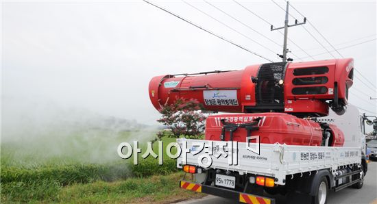 "439ha 대상, 광역살포기와 무인헬기 등 사용…병해충 감소 및 일손문제 해소" [아시아경제 노해섭 기자]장성군이 친환경농업 확산을 위해 관내 벼 집단단지를 대상으로 공동방제를 추진한다고 지난 8일 밝혔다. 군은 7월부터 9월까지 총 사업비 8천여만원을 투입해 439ha를 대상으로 지역여건에 따라 광역살포기와 무인헬기를 통한 공동방제를 추진할 계획이다. 특히, 친환경 생물약제를 공동방제해 고령농가 등의 친환경 농업 참여를 유도하고, 잔류농약 검출 일소로 소비자가 신뢰할 수 있는 안전농산물을 생산하는 방향으로 진행할 방침이다. 광역방제는 친환경농업단지 조성사업 실천협약을 맺은 벼 집단재배단지를 대상으로 재배면적 5ha이상에 광역살포기를 이용해 연 3회 공동방제를 실시할 예정이다.실제로, 광역살포기는 방제거리가 약100m로 트럭에 탑재해 농로에서 살포할 수 있고, 1일 최대 50ha 방제가 가능해 개인의 방제작업을 대신할 수 있어 농업인들에게 좋은 평가를 받고 있다.아울러, 농업기술센터에서 보유한 무인헬기를 통한 방제도 추진한다. 이는 소량의 약제로 넓은 지역을 방제함은 물론, 기체의 크기가 작아 농로에서 이착륙이 가능해 약제 보충도 현장에서 이뤄지는 등 1일 최대 50ha에 이르는 방제가 가능하다. 무인헬기 방제는 지상 3~4m 상공에서 10㎛정도의 입자 크기로 미세하게 살포되고 헬기 하양풍이 작물을 적당히 흔들어 주어 약제가 뿌리까지 깊숙이 살포되는 등 방제효과가 탁월한 것으로 나타난 바 있다. 군 관계자는 "광역단위 병해충방제로 친환경쌀 안정생산 및 효율적인 친환경농업 실천으로 일손부족 해결과 생산비 절감에 큰 도움이 된다"며 "앞으로도 친환경농업 육성과 확대를 위한 지속적인 행정적인 지원을 아끼지 않을 계획"이라고 말했다. 노해섭 기자 nogary@ <ⓒ세계를 보는 창 경제를 보는 눈, 아시아경제(www.asiae.co.kr) 무단전재 배포금지>