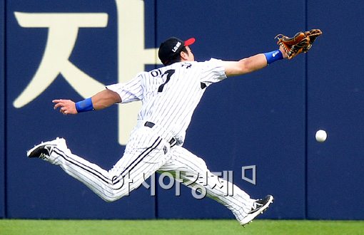 [아시아경제 김현민 기자] 8일 서울 잠실구장에서 열린 프로야구 두산 베어스와 LG 트윈스의 경기, 2회초 2사 1루에서 LG 중견수 이병규(7)가 두산 최재훈의 타구를 놓치고 있다. 김현민 기자 kimhyun81@asiae.co.kr<ⓒ세계를 보는 창 경제를 보는 눈, 아시아경제(www.asiae.co.kr) 무단전재 배포금지>