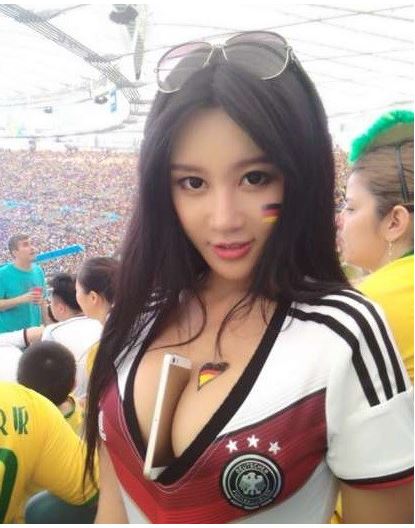 '베이징사범대 얼짱'으로 유명한 판링이 독일을 응원을 하고 있다.(사진: 판링 웨이보)