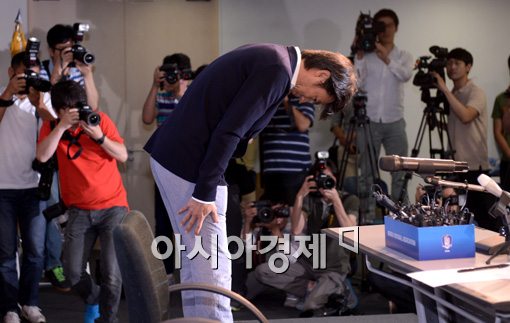 [아시아경제 김현민 기자] 홍명보 축구 국가대표팀 감독이 10일 오전 서울 신문로 축구회관에서 기자회견을 열고 머리숙여 인사하고 있다. 김현민 기자 kimhyun81@asiae.co.kr<ⓒ세계를 보는 창 경제를 보는 눈, 아시아경제(www.asiae.co.kr) 무단전재 배포금지>