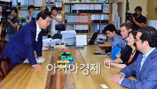 [아시아경제 최우창 기자]박원순 서울시장이 11일 서울시청 시장실을 찾은 하버드대학원 프로젝트 연구팀을 만나 면담을 하고 있다.최우창 기자 smicer@asiae.co.kr<ⓒ세계를 보는 창 경제를 보는 눈, 아시아경제(www.asiae.co.kr) 무단전재 배포금지>