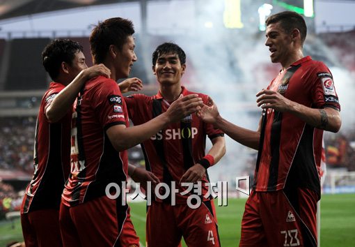 [아시아경제 김현민 기자] 12일 서울 상암월드컵경기장에서 열린 프로축구 K리그 클래식 FC 서울과 수원 삼성의 경기에서 서울 김진규가 전반 선제골을 성공시키고 동료들과 세리머니하고 있다. 김현민 기자 kimhyun81@asiae.co.kr<ⓒ세계를 보는 창 경제를 보는 눈, 아시아경제(www.asiae.co.kr) 무단전재 배포금지>
