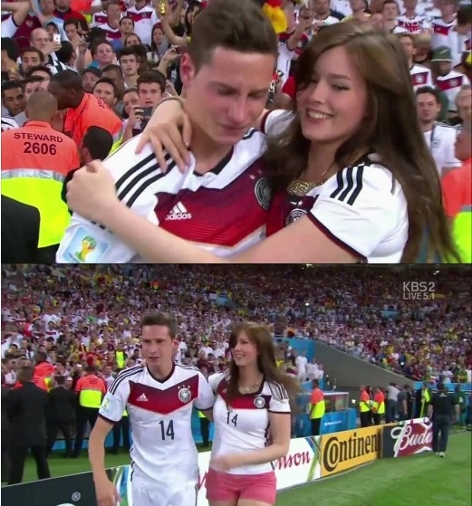 [아시아경제 온라인이슈팀] 드락슬러 여자친구·괴체 여자친구 미모 대결 '후끈'… 글래머 vs 황금뒤태?독일이 아르헨티나를 꺾고 2014 브라질 월드컵 주인공으로 확정되며 독일 대표팀 선수들의 여자친구들이 화제다. 독일은 14일(한국시각) 브라질 리우 데 자네이루의 마라카낭 경기장에서 열린 2014 브라질월드컵 아르헨티나와의 결승전에서 전후반 90분 동안 득점없이 비겼지만 연장 후반 8분, 마리오 괴체의 결승골에 힘입어 1-0으로 승리했다. 독일이 우승을 확정 짓자 선수들의 가족과 여자친구들이 관중석에서 그라운드로 내려와 함께 기쁨을 나눴다. 특히 드락슬러의 여자친구 레나는 뛰어난 미모로 관심을 모았다. 드락슬러의 여자친구 레나는 독일 승리 후 긴 갈색머리에 풍만한 몸매로 드락슬러와 그라운드를 누비며 팬들의 부러움을 샀다.괴체의 여자친구도 화제다. 괴체 여자친구는 독일 최고의 핫한 모델로 각광받고 있다. 특히 그의 반누드 화보 사진 몸매는 흠 잡을 데 없어 보는 이로 하여금 설레게 만든다.한편 괴체의 결승골은 더이상 말이 필요 없는 결승골이었다.후반 8분 안드레 쉬를레(25, 첼시)가 왼쪽 측면을 돌파해 중앙으로 크로스를 올렸고 괴체는 골에어리어 왼쪽 모서리에서 가슴 트래핑 후 왼발 발리슈팅을 시도해 오른쪽 골문을 열어 젖힌 것이다.괴체는 이로써 이번 대회 두 번째 골을 결승전에서 기록하며 그 누구보다 몇배의 기쁨을 누리게 됐다.독일의 엄친아라고 불리는 마리오 괴체는 23살로 어린나이에도 불구하고 2009년~2013년까지 도르트문트, 2013년부터는 바이에른 뭔헨헤서 뛰고 있다.드락슬러 여자친구와 괴체 여자친구 소식을 접한 네티은 "드락슬러 여자친구, 괴체 여자친구 박빙 승부" "드락슬러 여자친구와 괴체 여자친구,왜 축구선수 여자친구는 이쁠까" "드락슬러 여자친구 괴체 여자친구, 너무 화끈해" 등의 반응을 보였다. 온라인이슈팀 <ⓒ세계를 보는 창 경제를 보는 눈, 아시아경제(www.asiae.co.kr) 무단전재 배포금지>