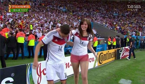 [아시아경제 온라인이슈팀] 드락슬러 여자친구와 입맞춤에 조우종 캐스터"제발 그만하세요"2014 브라질월드컵 우승컵을 획득한 독일 축구대표팀 선수들의 여자친구의 미모가 화제가 되는 가운데, KBS 조우종 캐스터의 질투발언이 주목받고 있다.독일 축구대표팀은 14일(한국시간) 브라질 리우 데 자네이루에 위치한 '에스타디오 두 마라카낭'에서 열린 2014 브라질 월드컵 결승전 아르헨티나와의 경기에서 연장 후반 8분 마리오 괴체의 결승골로 1대 0으로 승리했다.이 날 경기가 끝난 후 독일의 월드컵 우승이 확정되자 대표팀 선수들의 아내 및 연인들은 경기장으로 나와 함께 기쁨을 나눴다. 특히 독일의 미드필드 율리안 드락슬러의 여자친구가 화면에 잡혀 화제가 됐다. 빼어난 미모를 지닌 그녀가 방송을 타면서 축구팬들의 이목이 집중되고 있다.조우종 KBS 아나운서
