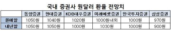 국내 증권사 원·달러 환율 전망치(각 증권사)