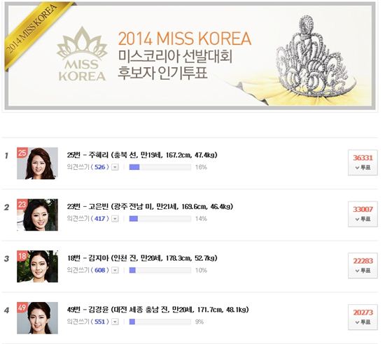미스코리아 2014 인기 투표(사진: 다음 지식투표란 캡처)