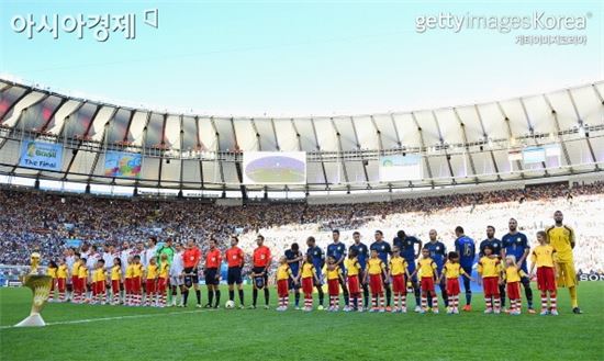 결승전을 앞두고 경기장에 모인 독일과 아르헨티나 선수들[사진=Getty Images/멀티비츠]