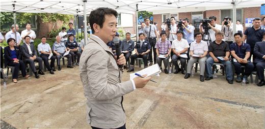남경필 경기도지사가 14일 시화도금단지를 방문, 기업체 대표 및 직원들과 간담회를 갖고 있다.