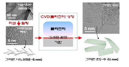 ▲그래핀 분말이 판으로 성장하는 과정.[사진제공=KIST]