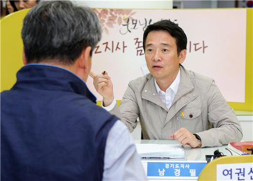 남경필 경기도지사가 도청을 찾은 민원인과 대화하고 있다.