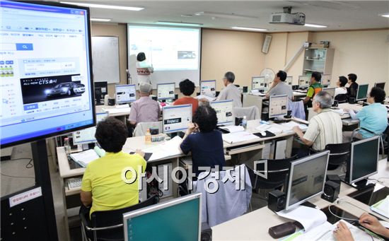 광주광역시 동구(청장 노희용)는 16일 정보화교실 운영시간에 관내 주민들의 정보화능력 향상을 위해 한글 표 작성법 등의 기초교육을 실시했다. 사진제공=광주시 동구