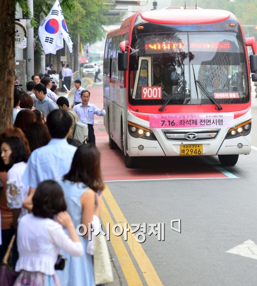 [아시아경제 온라인이슈팀] 광역버스 입석금지 첫날, '출근길 대란' 없었지만 무정차 통과 잇따라 혼란16일 광역버스의 입석금지 조치가 전면 시행됐다.광역버스 입석금지 전면 시행 첫날인 16일 우려했던 출근길 대란은 없었으나 고속도로 진입 직전 정거장에서는 무정차 통과가 잇따라 혼란이 빚어졌다.일부 네티즌은 소셜네트워크서비스(SNS)를 통해 "대학교 개강하면 진짜 지옥문 열릴 것"이라며 "아직 출근길 대란은 시작된 것도 아니다"고 불만을 표출했다. 또 실시간으로 출근길에 버스를 타려고 길게 줄 선 사진 등을 공유하며 정책을 비판했다.한 온라인 커뮤니티에서는 광역버스 한 번 안 타본 관료들이 탁상공론으로 내놓은 정책이 아니냐며 비판하는가하면 세월호 사건을 되새기며 안전 문제에 있어서는 해이해지면 안 된다는 등 의견이 분분했다.경기도 대중교통과 관계자에 말에 따르면 "7월16일부터 8월 중순까지 한 달 정도 담당 공무원도 탑승하여 현장 모니터링도 할 예정"이며 "다소 혼란이나 불편이 있더라도 광역버스 좌석제는 더 안전한 사회로 가는 첫 걸음"이라고 적극적인 참여와 협조를 당부했다.온라인이슈팀 <ⓒ세계를 보는 창 경제를 보는 눈, 아시아경제(www.asiae.co.kr) 무단전재 배포금지>