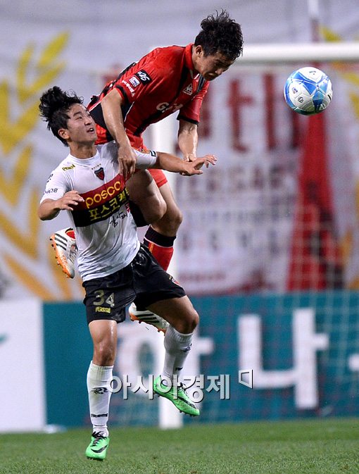 [아시아경제 김현민 기자] 16일 서울 상암동 서울월드컵경기장에서 열린 2014 하나은행 FA컵 FC 서울과 포항 스틸러스의 16강전에서 서울 이웅희와 포항 이광혁이 공중볼을 다투고 있다. 김현민 기자 kimhyun81@asiae.co.kr<ⓒ세계를 보는 창 경제를 보는 눈, 아시아경제(www.asiae.co.kr) 무단전재 배포금지>