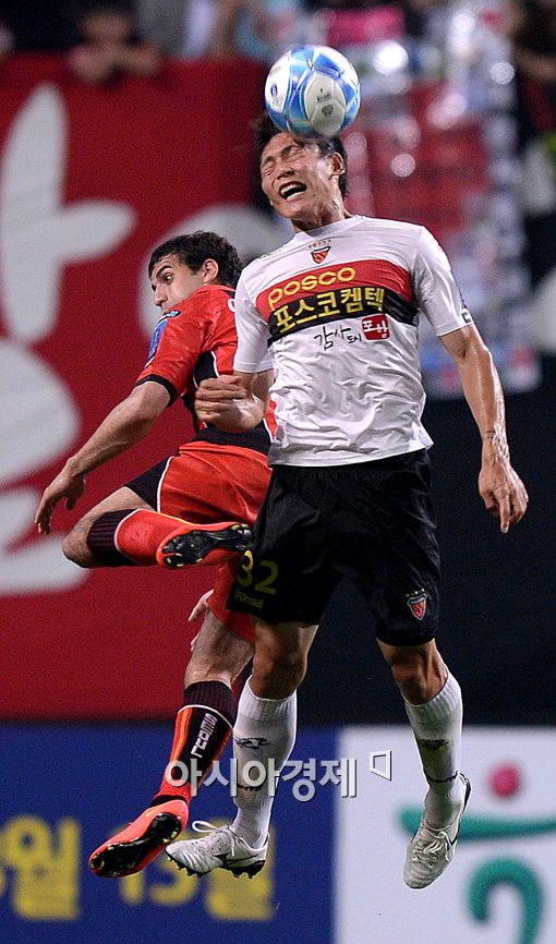 [아시아경제 김현민 기자] 16일 서울 상암동 서울월드컵경기장에서 열린 2014 하나은행 FA컵 FC 서울과 포항 스틸러스의 16강전에서 포항 김형일이 서울 에스쿠데로와 공중볼을 다투고 있다. 김현민 기자 kimhyun81@asiae.co.kr<ⓒ세계를 보는 창 경제를 보는 눈, 아시아경제(www.asiae.co.kr) 무단전재 배포금지>