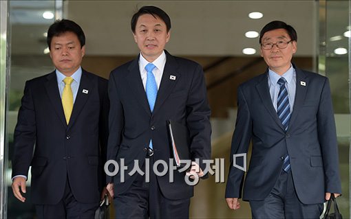 [아시아경제 윤동주 기자] 권경상 인천 아시아게임 조직위원회 사무총장(가운데)등 남북실무접촉 남측 대표단일행이 17일 판문점에서 열리는 '북한 선수단과 응원단의 아시안게임 참여와 관련된 구체적 문제를 논의'하기 위해 서울 삼청동 남북회담본부를 나서고 있다.윤동주 기자 doso7@asiae.co.kr<ⓒ세계를 보는 창 경제를 보는 눈, 아시아경제(www.asiae.co.kr) 무단전재 배포금지>