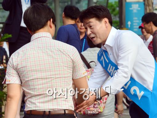 [아시아경제 최우창 기자]7·30 서울 동작을 국회의원 재·보궐선거에 출마한 새정치민주연합 기동민 후보가 17일 서울 동작구 남성역 인근에서 출근길 인사를 하며 지지를 호소하고 있다.최우창 기자 smicer@asiae.co.kr<ⓒ세계를 보는 창 경제를 보는 눈, 아시아경제(www.asiae.co.kr) 무단전재 배포금지>