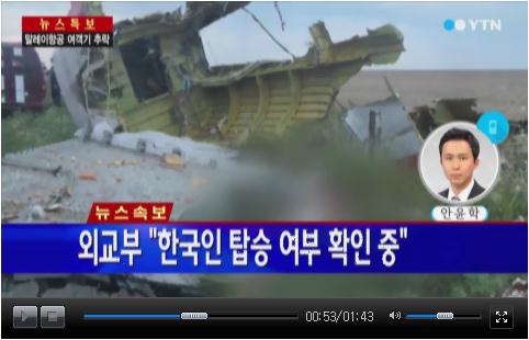 피격 말레이시아 여객기, 한국인 탑승여부 확인 중 (사진: YTN 방송화면 캡처)