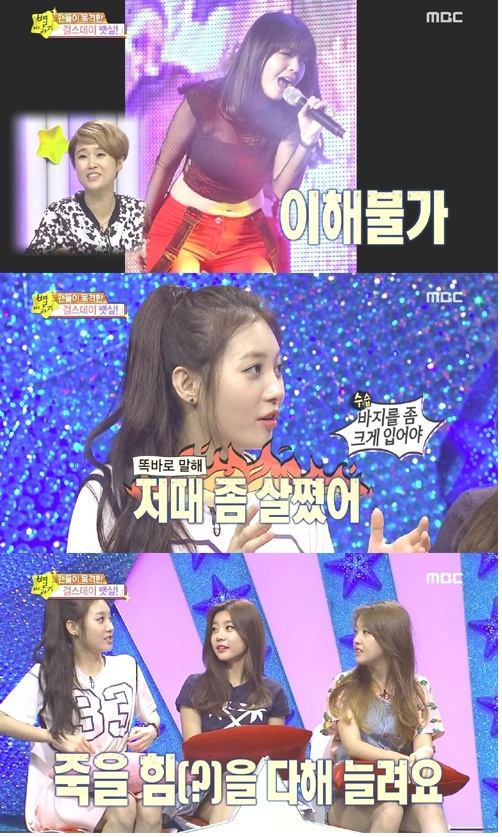 민아 뱃살 사진 화제(사진:MBC 별바라기 캡처)