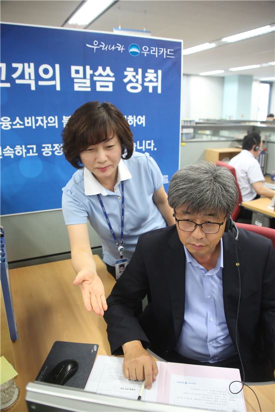 우리카드 강원사장이 고객에게 걸려온 전화를 받고있다