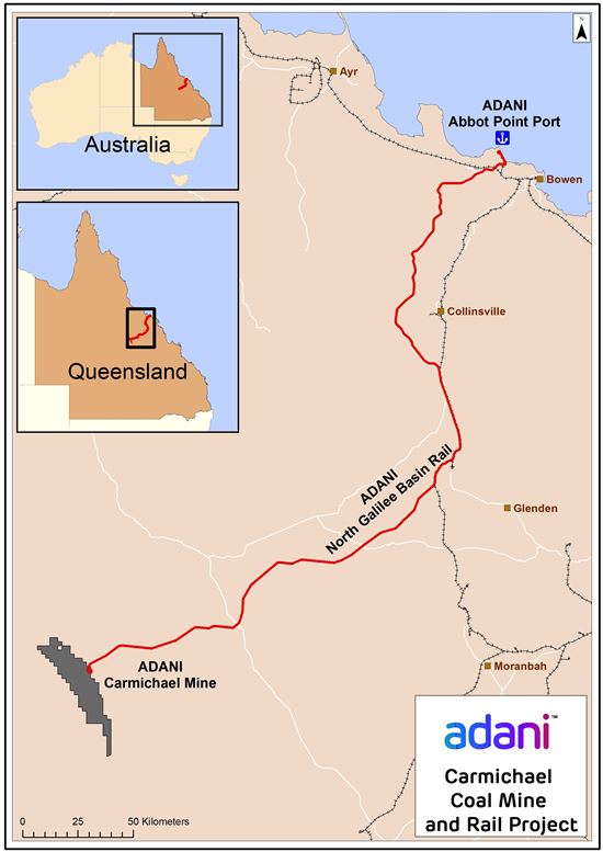 호주 퀸즈랜드주 카마이클 광산과 애봇 포인트 수출항만을 잇는 철도건설 현장 위치도(출처: 포스코건설)