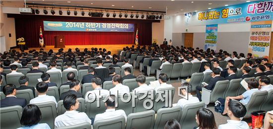 광주은행은 18일 오전 10시, 광주은행 본점 3층 대강당에서 김장학 은행장과 임원, 부장 및 지점장 등 200여명이 참석한 가운데 2014년 하반기 경영전략회의를 개최했다.