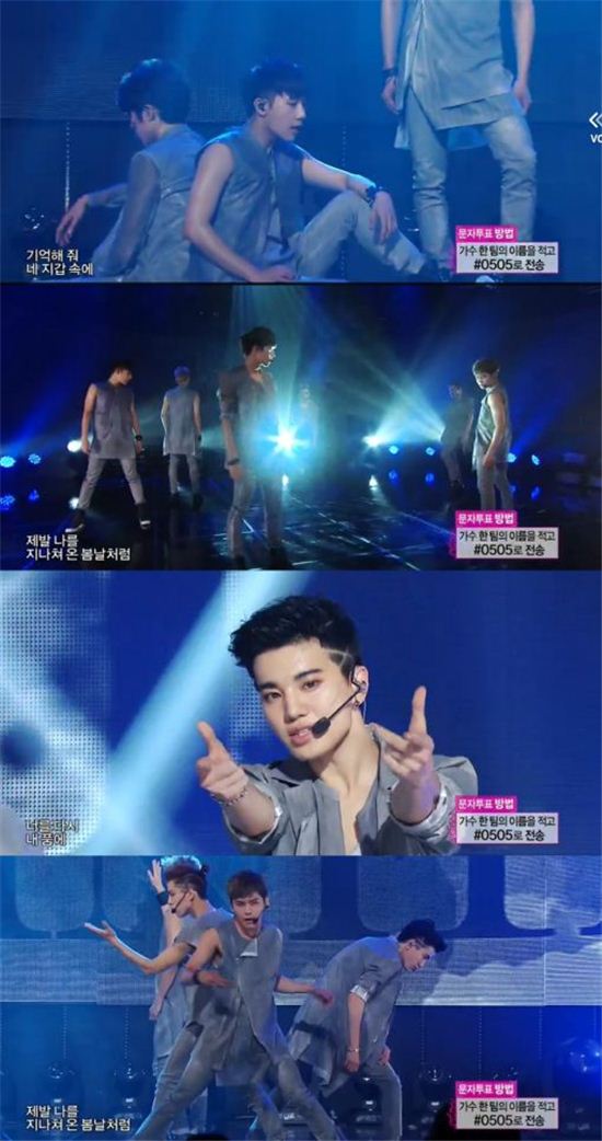 인피니트는 19일 오후 방송한 MBC '쇼! 음악중심'에 출연해 타이틀곡 '백'의 컴백무대를 펼쳤다. /MBC '쇼 음악중심' 캡처