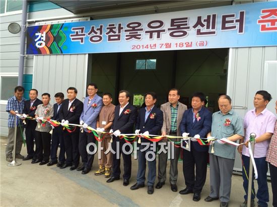 곡성군이 참옻 유통센터 준공식을 가졌다. 이날 유근기 곡성 군수등 참석자들이 준공 테이프를 자르고 있다.