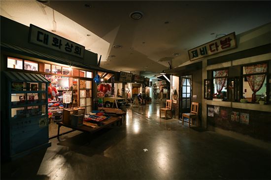 근현대미술 체험-'노 모어 아트(No More Art)' 전시장 내부. 제비다방, 국제시장 등이 재현돼 있다.