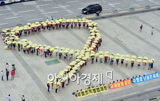 [아시아경제 백소아 기자] 22일 서울 광화문광장에서 세월호참사 국민대책회의와 핵없는 사회 회원들이 '위험사회를 멈추는 시민행동 퍼포먼스'를 선보이고 있다.백소아 기자 sharp2046@asiae.co.kr<ⓒ세계를 보는 창 경제를 보는 눈, 아시아경제(www.asiae.co.kr) 무단전재 배포금지>