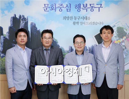 광주광역시 동구(구청장 노희용)와 CMB광주방송(본부장 이석상)은 23일 동구청 3층 접견실에서 구정홍보에 관한 MOU를 체결했다. 사진제공=광주시 동구<br />