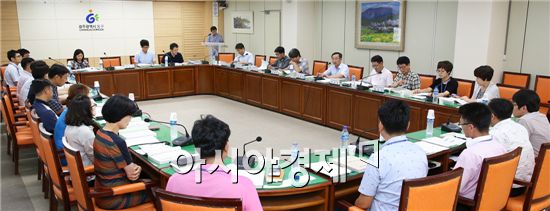 광주광역시 동구(구청장 노희용)는 23일 민간전문가 및 공무원이 참여한 가운데 문화관광, 도시재생, 행정혁신 등 6개 분야의 중장기 비전과 추진전략을 제시하기 위한 '주민행복 비전 2025'계획 수립 T·F 전체회의를 개최했다. 사진제공=광주시 동구<br />