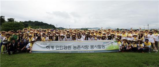 [아시아경제 이장현 기자] KB국민은행은 경기도 여주에서 사단법인 '함께하는 사랑밭'과 함께 하계 인턴행원 농촌사랑 봉사활동을 실시했다고 24일 밝혔다.이번 봉사활동은 서울 및 수도권에 근무하는 100여명의 인턴행원들이 참여해 마을거리 벽화그리기, 독거노인가정 도배 및 장판교체, 비닐하우스 참외밭 풀 뽑기 등을 실시했다. 봉사활동에 참여한 인턴행원은 “농부들의 땀과 노력을 직접 체험하는 즐겁고 소중한 시간이었다”며 “고령화된 농촌 마을을 보면서 농촌에 대한 지속적인 관심을 갖도록 나부터 솔선수범 하겠다”고 말했다.KB국민은행 관계자는 “이번 봉사활동은 농촌 마을에 실질적인 도움을 제공할 수 있도록 마을 환경개선과 농촌 일손돕기를 병행해 진행했다”며 “인턴행원들이 근무기간 중 사회봉사활동 마인드를 함양하여 사회에서 존경 받는 일꾼으로 성장해 가기를 바란다”고 말했다. 이장현 기자 inside@asiae.co.kr<ⓒ세계를 보는 창 경제를 보는 눈, 아시아경제(www.asiae.co.kr) 무단전재 배포금지>
