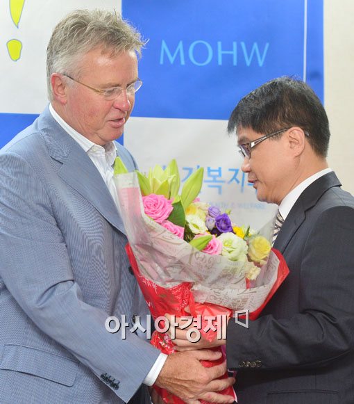 [아시아경제 백소아 기자] 25일 서울 용산구 중동보건의료협력지원센터에서 이병돈 한국시각장애인연합회장(오른쪽)이 거스 히딩크 네덜란드 감독(왼쪽)에게 꽃다발을 전달하고 있다. 보건복지부는 거스 히딩크 축구재단의 시각장애인을 위한 시각장애인 구장 건립과 시각장애인 축구대회 개최에 감사를 표했다.백소아 기자 sharp2046@asiae.co.kr<ⓒ세계를 보는 창 경제를 보는 눈, 아시아경제(www.asiae.co.kr) 무단전재 배포금지>
