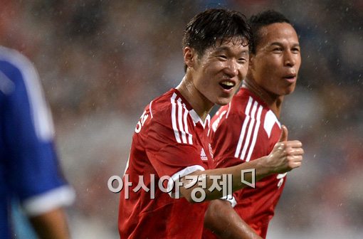 [아시아경제 김현민 기자]프로축구 별들의 잔치 'K리그 올스타전 with 팀 박지성' 경기가 25일 서울월드컵경기장에서 열렸다. 박지성이 정대세의 골을 어시시트한 이영표를 향해 엄지를 세우고 있다. 김현민 기자 kimhyun81@asiae.co.kr<ⓒ세계를 보는 창 경제를 보는 눈, 아시아경제(www.asiae.co.kr) 무단전재 배포금지>