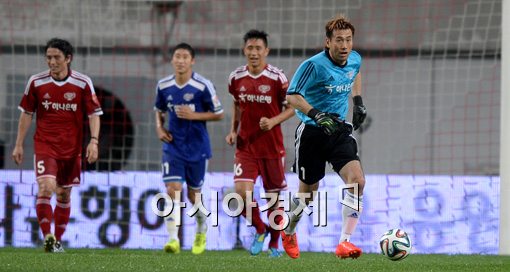 [아시아경제 김현민 기자]프로축구 별들의 잔치 'K리그 올스타전 with 팀 박지성' 경기가 25일 서울월드컵경기장에서 열렸다. 김병지가 골문을 비우고 드리블하고 있다. 김현민 기자 kimhyun81@asiae.co.kr<ⓒ세계를 보는 창 경제를 보는 눈, 아시아경제(www.asiae.co.kr) 무단전재 배포금지>