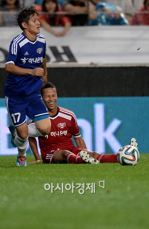 [아시아경제 김현민 기자]프로축구 별들의 잔치 'K리그 올스타전 with 팀 박지성' 경기가 25일 서울월드컵경기장에서 열렸다. 팀 박지성의 강수일이 그라운드에 미끄러져 볼을 빼앗긴 뒤 아쉬워하고 있다. 김현민 기자 kimhyun81@asiae.co.kr<ⓒ세계를 보는 창 경제를 보는 눈, 아시아경제(www.asiae.co.kr) 무단전재 배포금지>