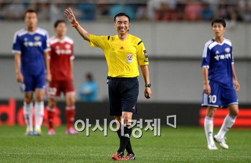 [아시아경제 김현민 기자]프로축구 별들의 잔치 'K리그 올스타전 with 팀 박지성' 경기가 25일 서울월드컵경기장에서 열렸다. 전남 하석주 감독이 올스타전 주심으로 활약하고 있다. 김현민 기자 kimhyun81@asiae.co.kr<ⓒ세계를 보는 창 경제를 보는 눈, 아시아경제(www.asiae.co.kr) 무단전재 배포금지>