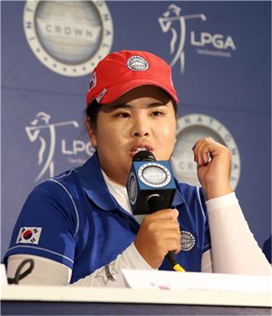 박인비가 인터내셔널크라운 예선 3라운드 직후 인터뷰를 하고 있다. 사진=하나금융그룹 제공