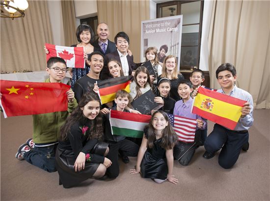 알리안츠생명이 그룹이 후원하는 랑랑 국제음악재단에서 진행하는 '주니어 뮤직 캠프' 참가자를 모집한다. 세계 각국의 어린이들이 주니어 뮤직 캠프와 관련해 기념촬영을 하고 있다. <br />